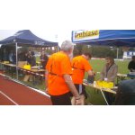 Im Ziel waren unter den schnellsten zwölf TeilnehmerInnen SIEBEN Selztal-Walker zu finden. Andreas (2.) und Peter (3.) kamen so in den Genuss einer Siegerehrung, die zum ersten Mal auch für die Walker durchgeführt wurde. Lutz blieb mal wieder der 4. Platz - darauf scheint er ein Abonnement zu haben. Stefan und Martina (8./9.) sowie Andrea und Carmen (11./12.) sorgten dafür, daß im Zielbereich der Walker zunächst unsere Orangenen Shirts das Bild bestimmten. Unter den danach ankommenden, im Pulk der blauen BI T-Shirts der Mitarbeiter, kamen dann Roswitha, Rolf, Melanie, Lisa, Hanni und Beate gut gelaunt ins Ziel.
